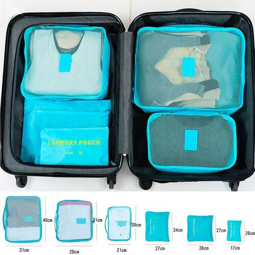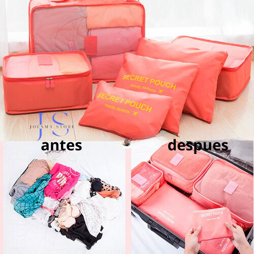 Descubre nuestro Organizador de Equipaje, un conjunto de 6 bolsas de viaje esenciales que transformarán tu experiencia de viaje.