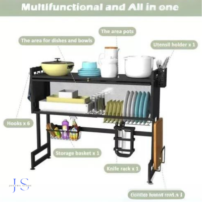 Hecho de materiales premium, este estante es duradero, resistente al óxido y capaz de soportar platos pesados, proporcionando una solución fiable para tus necesidades diarias.